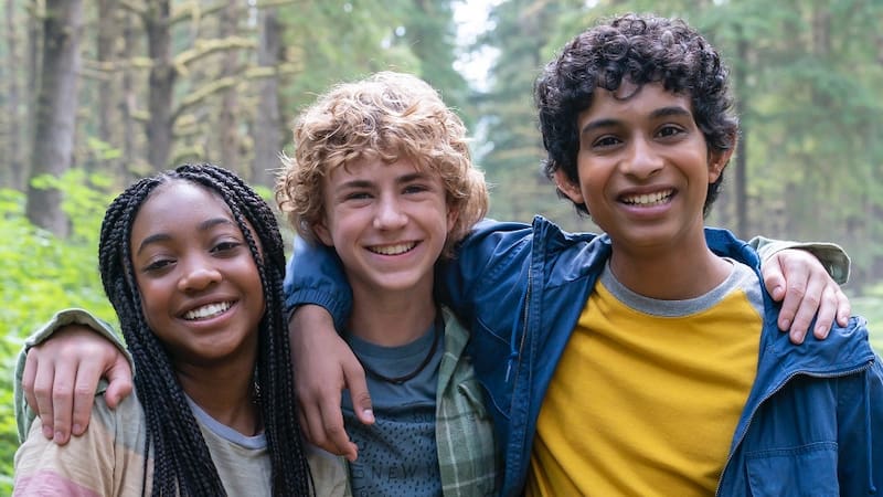 A través de la cuenta oficial en Twitter de la serie, el streaming de Disney compartió la primera imagen que muestra cómo se verán Percy Jackson (Walker Scobell), Annabeth Chase (Leah Sava Jeffries) y Grover Underwood (Aryan Simhadri) en la serie. Todo con lo que podría ser el Campamento Mestizo de fondo.