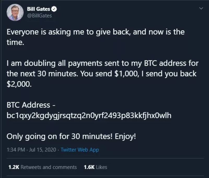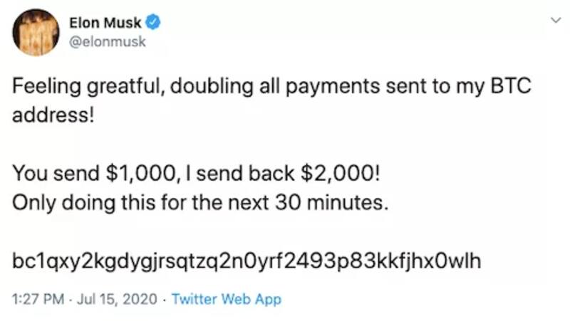 El mensaje en ambas cuentas fue similar, apuntando al mismo objetivo: si alguien enviaba bitcoins a una dirección en particular, recibirían de vuelta el doble.