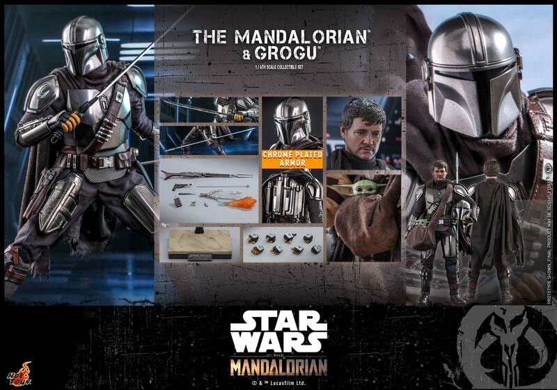 El primer set tiene una escala de 1/6, cuenta con un Din Djarin de 30 cm y un Grogu de 6m. Ambas figuras están elaboradas con detalles basados en la serie y mientras “Baby Yoda” se presentará de la mano de una bolsa para que el Mando lo cargue, el personaje titular lucirá su armadura de beskar y llegará de la mano de accesorios como manos intercambiables, un jetpack, un blaster, lanza de beskar y el Darksaber.