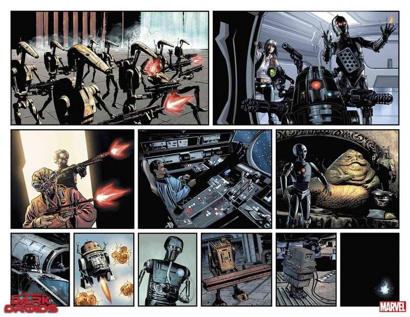 Revelado durante el panel de Marvel Comics en el evento Star Wars Celebration, “Dark Droids será una historia que comenzará en agosto próximo con un número especial llamado Dark Droids #1, el cual será escrito por Charles Soule y contará con arte de Luke Ross.