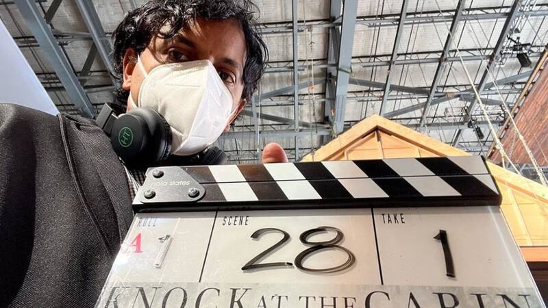 “Primer día. Primera toma ¡Decimoquinta película! Knock at the Cabin”, escribió el director junto a una selfie donde se puede ver él y una claqueta con el logotipo de la película.