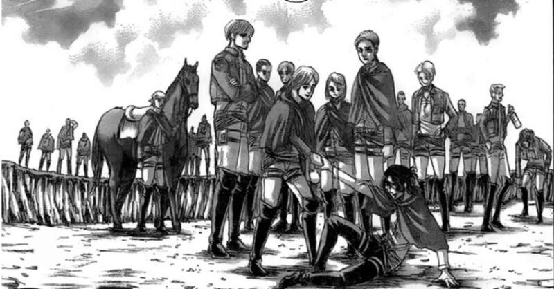 Finalmente, el capítulo culmina mostrando a Hange en un prado donde se reencuentra con Erwin y todos los exploradores que han perdido la vida a lo largo de la historia.