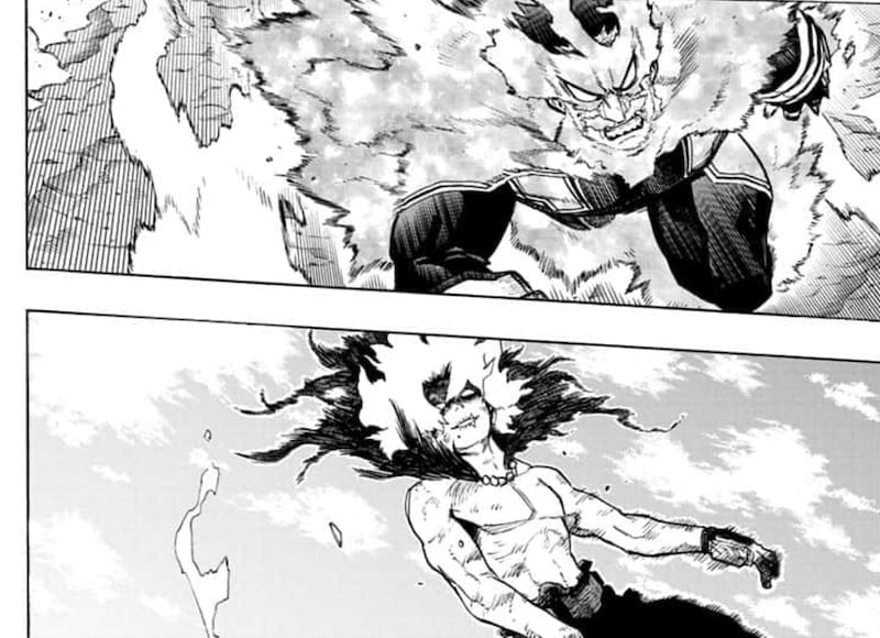 A pesar de la intervención de Aizawa quien bloqueó los poderes de Shigaraki, el padre de Todoroki no pudo con el villano viéndose superado sólo por su gran poder físico.