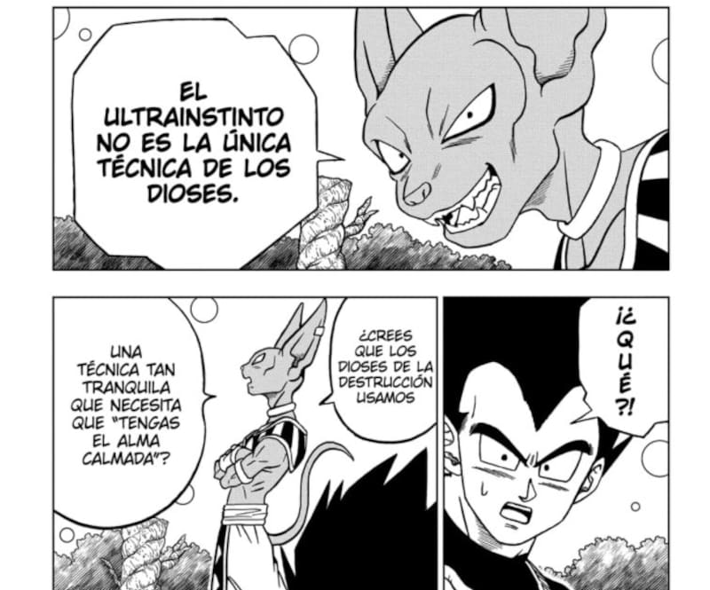En la ocasión, el Dios de la Destrucción, le pregunta a Vegeta si su objetivo es alcanzar esta transformación para vencer a Gokú, a lo que este responde que lo hará de otra forma. Es aquí cuando Beerus le comenta que “el ultra instinto no es la única técnica de los dioses”, explicando que los dioses de la destrucción no utilizan una técnica que necesita que se tenga el alma calmada.