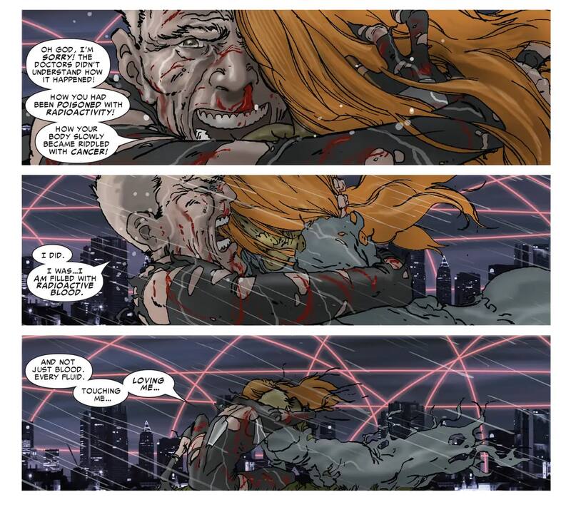 La historia en cuestión es Spider-Man: Reign, una miniseria publicada en 2006 a partir del trabajo de Kaare Andrews que presenta una historia posible situada 30 años en el futuro del universo Marvel. ¿Lo más notorio de esa idea? Pues que un viejo Peter debe volver a la acción cargando una pesada mochila de culpa: Mary Jane murió de cáncer.- Un cáncer provocado por... su propio semen. Es decir, sus fluidos corporales eran radioactivos. Mortales. Literalmente un morir de snus-snus, como dirían en Futurama.