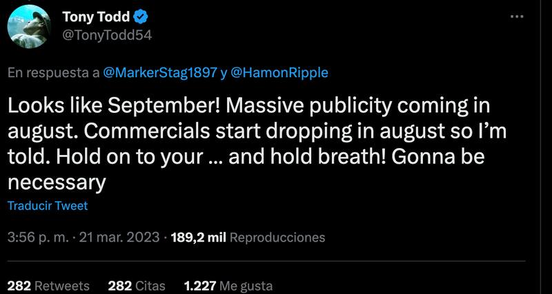 “¡Parece septiembre! Publicidad masiva en agosto. Los comerciales comienzan a aparecer en agosto, según me han dicho. Aférrate a tu… ¡y aguanta la respiración! va a ser necesario”, escribió Todd en respuesta a un fanático que afirmó que estaba esperando por Marvel’s Spider-Man 2.
