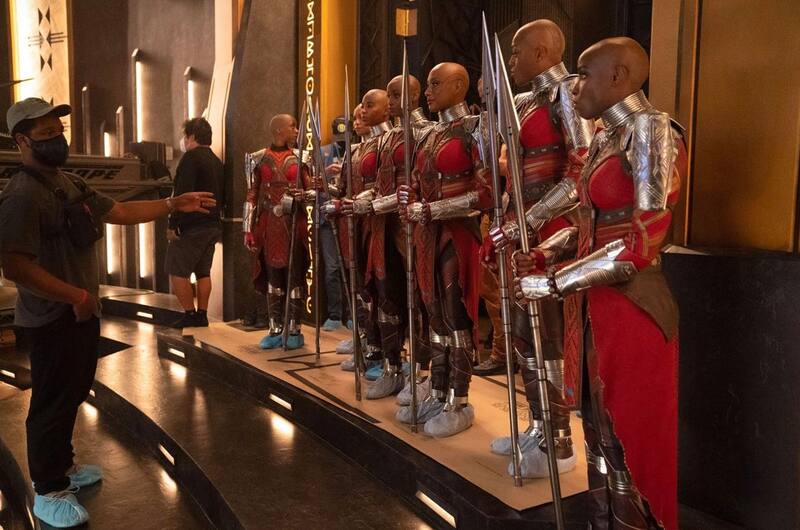 Todo además de una foto del rodaje que resalta al director Ryan Coogler con las Dora Milaje.