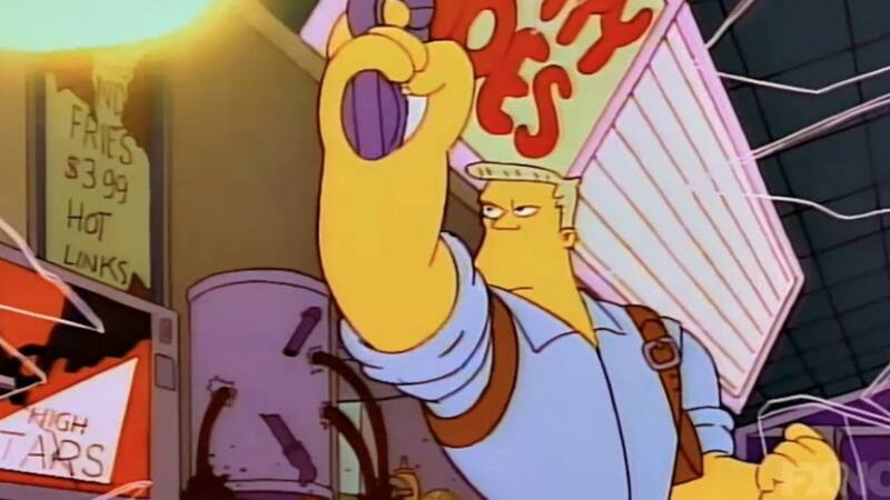Como recordarán McBain es un personaje que existe en las películas de acción en el mundo de Los Simpson y es interpretado por Rainier Wolfcastle, un “actor” que claramente está inspirado en Arnold Schwarzenegger aunque sus películas y caracterización también incluyen referencias a Bruce Willis.