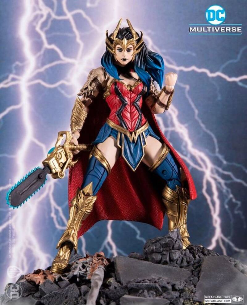 Por su parte, la figura de Wonder Woman mostrará a la amazona con su diseño de Death Metal e incluirá a la motosierra de la verdad que la amazona usó para “derrotar” al Batman que Ríe.