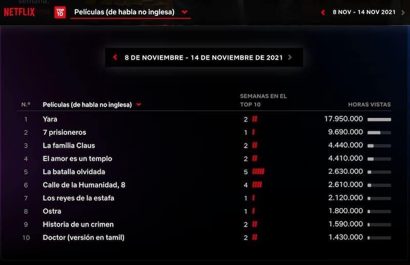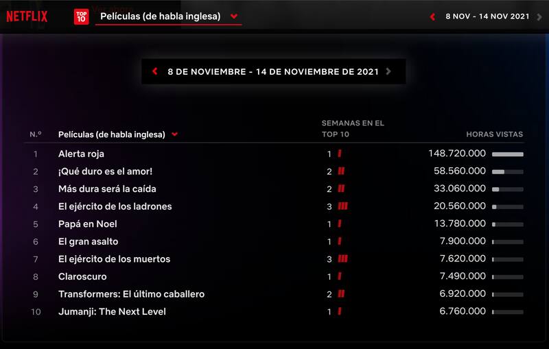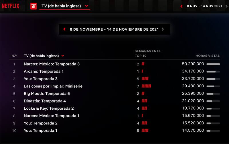 Si son usuarios de Netflix probablemente tienen claro que en el Top 10 de la plataforma figuran las producciones más vistas del apartado que están revisando. Es decir, si están en la sección de la series, Netflix les mostrará el Top 10 de los programas más vistos en su país según sus propios datos.