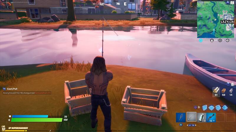Otra actividad hecha para darle vida al juego es la pesca. Desde hace rato ya que se pueden tomas cañas y pescar en los ríos y lagos de Fortnite, pero ahora en una mecánica inspirada directamente desde Animal Crossing, se agregaron decenas de tipos de peces que, al comerlos, te pueden entregar habilidades especiales como mayor velocidad, vista térmica, saltos más altos y más. Además, el tamaño del pescado se queda alojado en un ranking que luego puedes comparar con tus amigos. En serio, pescar ahora es divertido y hasta te da puntitos de experiencia.