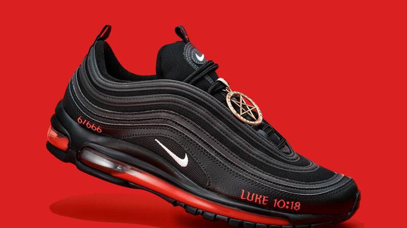 Las “zapatillas Satán” en cuestión corresponden a modelos Air Max ‘97 negras y rojas modificadas con un pentagrama dorado, una inscripción de un verso bíblico que hace referencia a Satán y una burbuja de plástico que contendrá sangre humana. La línea fue puesta a la venta el 29 de marzo y consiste en 666 pares numerados que se venden por $1.080 dólares cada uno.