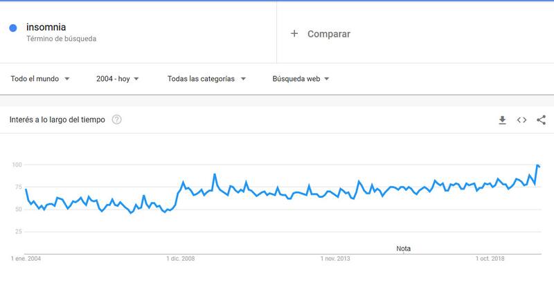 Los siguientes son los gráficos de ambas búsquedas, aunque el término “insomnia” es mucho más buscado.