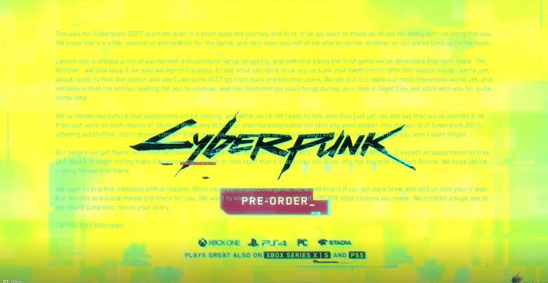 Finalmente llega Cyberpunk 2077, y desde CD Projekt RED dieron a conocer el tráiler de lanzamiento de lanzamiento del juego, el según se ha descubierto esconde un mensaje oculto por parte de los desarrolladores.