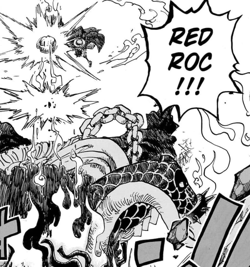 Tras una serie de sucesos es que Luffy se enfrenta a Kaido una vez más, esta vez más fuerte, es en este contexto, que el líder de los Sombrero de Paja utiliza su nueva técnica que tiene por nombre: Gomu Gomu Red Roc, y corresponde a una versión más poderosa del Red Hawk.