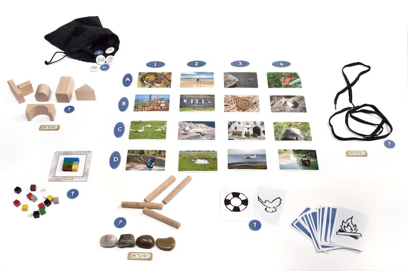 Es una variante clásica de juegos como Dixit o Pictionary, pero la gracia de Pictures es que el juego viene con cinco elementos diferentes que tendremos que usar para representar las cartas, elementos que son poco comunes y que requieren gran habilidad para formar cada figura.