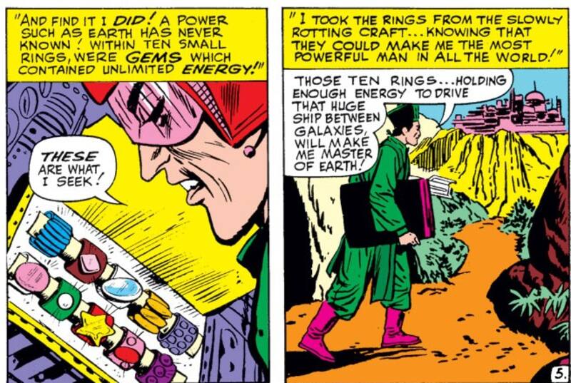 Y es que, aunque el Mandarín estaba pasando por varios problemas, un día descubrió a una nave que contenía los restos de Axonn-Karr, una especie de dragón extraterrestre. El Mandarín utilizó la tecnología de la nave para aprender sobre Axonn-Karr y su planeta, pero lo más importante es que también decidió apoderarse de la fuente de poder de ese aparato: un juego de diez anillos.
