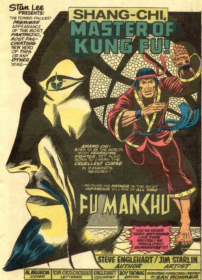 Creado en 1973 por el equipo creativo compuesto por Steve Englehart y Jim Starlin, Shang-chi es un personaje que no surgió de una idea particular de aquellos creadores y en realidad fue inventado para operar como un rival de Fu Manchu, un villano establecido por Sax Rohmer y del que Marvel Comics adquirió los derechos después de que Warner Bros le negara la posibilidad de concretar un cómic basado en la serie Kung Fu.