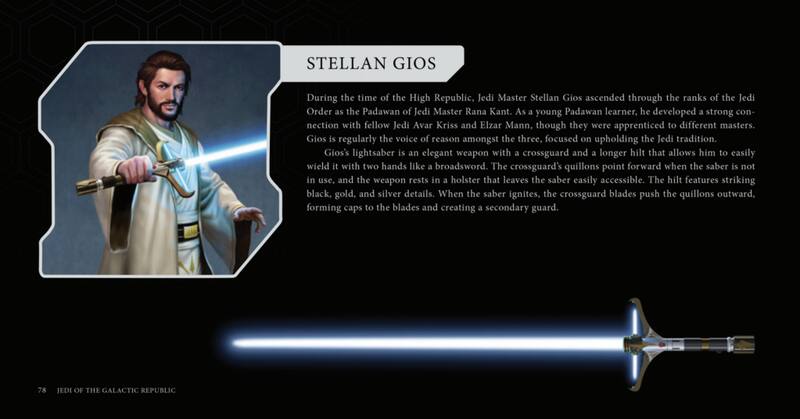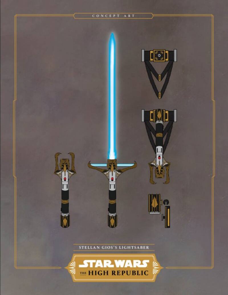 Desde StarWars.com dieron a conocer el primer vistazo al sable de luz, el cual perteneció al Maestro Jedi Stellan Gios, y según se puede apreciar siguiendo la temática de que The High Republic unos cientos de años atrás, cuenta con un diseño un tanto medieval