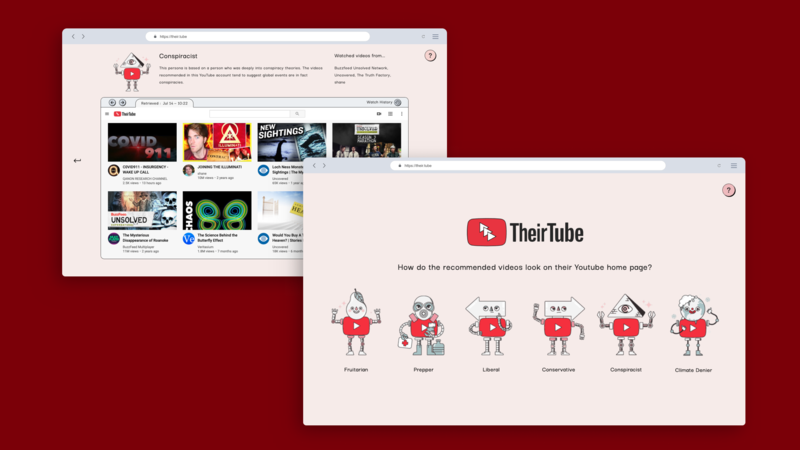 “TheirTube”, es el nombre de esta propuesta que permite que cada persona vea como funcionan estas burbujas de un determinado usuario. Este proyecto se centra en seis tipos de personas, y permite ver como funciona la plataforma desde su perspectiva.