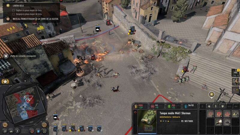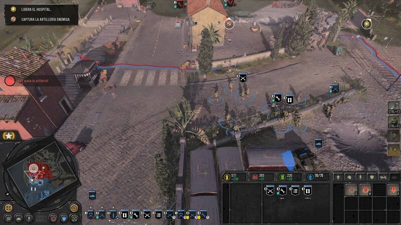 Ya una vez en el combate, es que saltaremos al escenario de combate tradicional, en donde tendremos que mover a nuestras unidades, generar nuevas, construir estructuras, capturar territorios enemigos y hacernos con la victoria. La jugabilidad en estos combates es algo que cautiva desde un comienzo si es que eres un fan de la estrategia, ya que el juego entrega una gran cantidad de opciones para el combate, desde utilizar barricadas para esconder a nuestra unidades, tomar armas pesadas que dejaron los enemigos abandonadas o incluso guarecer a nuestras unidades en los edificios que encontremos. Todo esto, hace que el juego se sienta realmente vivo, y que tengamos que estar pendientes del escenario al momento de combatir.