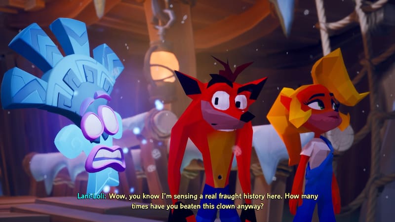 Especial atención también cuentan las cinemáticas que relatan la historia la cual, aunque básica y a veces innecesaria, entrega el toque de humor y personalidad que también es sello de la serie. En esta oportunidad, Neo Cortex y N.Tropy se unen para crear un vacío espacio temporal y desde allí dominar el mundo. Para devolver todo a la normalidad, Crash, Coco y Aku-Aku tendrán que encontrar una serie de máscaras que son los guardianes de estos portales y que, en realidad, solo existen para darte nuevas habilidades en cada una de las etapas. Algo muy importante porque estas máscaras son quizás la principal innovación con respecto al gameplay que entrega el título.
