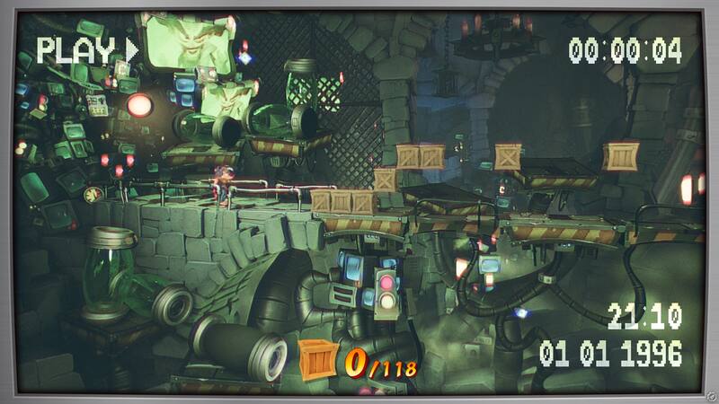 Ahora, esto que les dije, sigue siendo la punta del iceberg ya que, además, Crash Bandicoot 4 cuenta con niveles Invertidos, es decir, las mismas etapas pero con un filtro visual único y en modo espejo, lo que se vuelve particularmente difícil, sobre todo por los filtros. También, por si fuera poco, hay 23 niveles de Flashback, que son desafíos hechos solo para los más valientes -como etapas hechas solo de cajas en las que hay que rebotar- y variaciones de las etapas pero protagonizadas por personajes alternativos como Dingodile, Tawna y hasta el Dr. Neo Cortex.