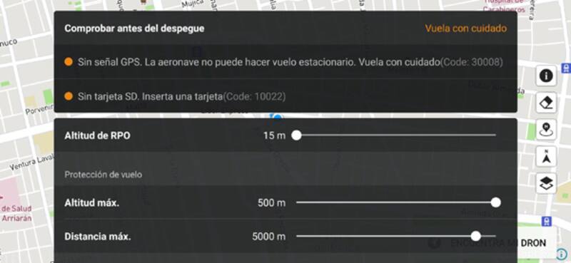 La aplicación para controlar al aparato además cuenta con toda la información necesaria, lo que me dejó de inmediato en claro que desde mi hogar no podía ganar mayor altura debido a que me encuentro en una zona de altura restringida.