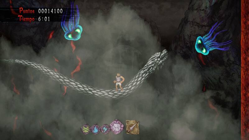 Todos los ingredientes visuales de un juego de Ghost ‘N Goblins están aquí, pero también lo están en términos de mecánicas con las diferentes armas que podemos utilizar o de cómo siempre tenemos que estar pendiente de nuestra interacción con el entorno. En un momento, por ejemplo, una plataforma sobre un pozo de agua avanza y retrocede en una dirección no anticipable, por lo que hay que resguardar nuestros saltos o caeremos de forma burda.