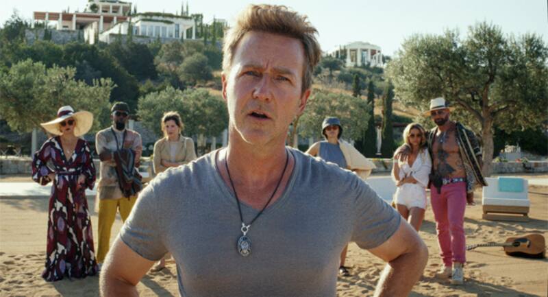 En el paradisíaco lugar, el multimillonario Miles Bron (Edward Norton) tiene preparado una aventura de misterio para disfrutar un fin de semana de tranquilidad, acceder a una vacuna contra la pandemia antes que cualquier otra persona, y resolver quién es el responsable de su propio asesinato ficticio. Todo lo anterior entrega una capa socioeconómica que vuelve al juego narrativo de Knives Out 2 en algo solo propio del 0.1% del mundo, ya que el magnate tiene tanto dinero, que inclusive puede darse el lujo de pedir prestada la Mona Lisa.