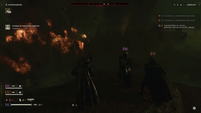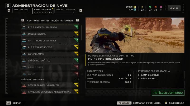En cuanto a las recompensas que podemos obtener por misiones estas son variadas y nos permiten acceder a diferentes tipos de elementos del juego, por un lado tenemos el nivel de nuestro personaje, el cual nos permitirá desbloquear nuevas estratagemas -que ya hablaremos de ellas- para lo cual tendremos que utilizar unos puntos especiales, por otro lado, al completar la misión te darán puntos que podrás utilizar en una especie de pase de batalla que tiene el juego, y que tiene dos versiones una gratuita y otra de pago, esto te permitirá desbloquear nuevos trajes, armas, capas u otros elementos. De esta forma es que al entrar a una misión mientras más objetivos secundarios cumplas mayor será la recompensa que obtendrás una vez la hayas completado.
