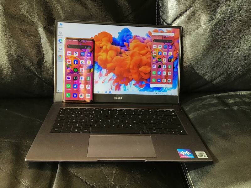 Ahora bien, lo que hace destacar a este equipo por sobre otros de similares características en su software propietario llamado PC Manager. Este es un programa que ya estaba presente en los computadores de Huawei y que permite, con un solo toque, llevar casi de forma literal a tu teléfono dentro del PC. Esto significa tener una ventana al costado con un espejo de tu teléfono y con control total desde el computador. Es decir, puedes revisar apps, notificaciones, enviar mensajes e interactuar con tu teléfono sin tocarlo. Incluso puedes arrastrar fotos, videos y archivos desde el teléfono a tu computador como si se tratara de una ventana más.
