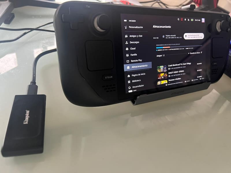 Un lado donde también se destaca a la perfección este dispositivo es en la instalación de juegos. Y es que si no tienes el espacio suficiente en tu notebook para instalar los diferentes títulos lo puedes hacer en este SSD y jugarlos sin mayores problemas. En los diferentes juegos que probamos el dispositivo funcionó sin problemas e incluso pudimos utilizarlo sin problemas en la Steam Deck luego de darle el formato correcto -el disco viene en formato exFAT por defecto y para la Steam Deck el ideal es ext4- , con lo que se vuelve un compañero ideal dado su poco tamaño y peso.