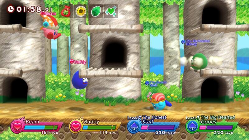 Porque además de poder usar a Kirby, hay personajes nuevos como Gooey o Bandana Dee, que si poseen movimientos mucho más variados e inspirados. Gooey sobre todo es el más entretenido ya que sus movimientos son prácticamente los mismos que tiene Kirby en Smash Bros, lo que lo hace ya el mejor de todos en cuanto a su diseño de peleas.