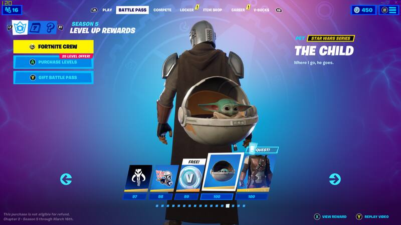 Pero la verdadera razón por la cual estarás jugando, al igual que yo, es que en el nivel 100 del pase de temporada, la recompensa final es nada más y nada menos que el mismísimo Baby Yoda, Grogu para los amigos, lo que no es solo una recompensa más que ideal para todo fanático de Star Wars sino que además tiene todo el sentido del mundo si es que deseamos jugar con El Mandalorian.