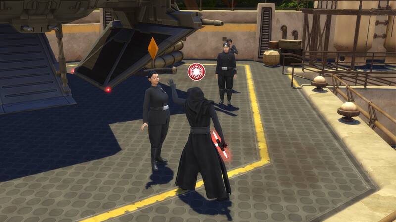 Las interacciones con Rey, Kylo Ren y Hondo tienen una dinámica propia de Los Sims y cuentan con las mismas opciones de relativas a Star Wars que se presentan para todo el resto de los personajes de Batuu.