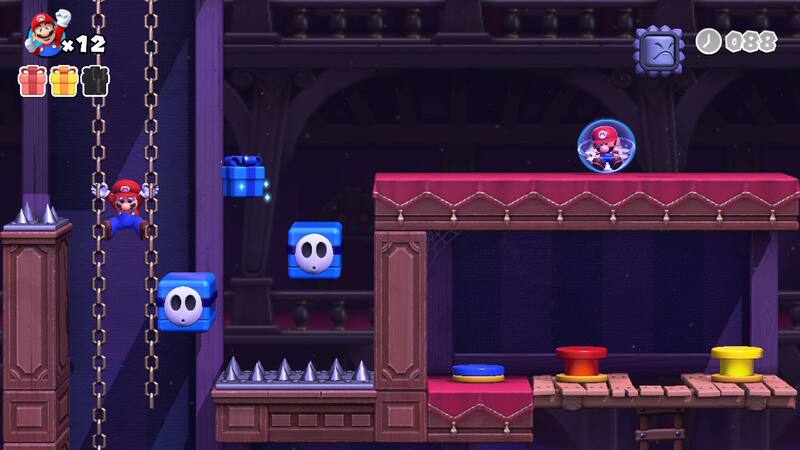 Además, incorpora un modo de dos jugadores que puede activarse simplemente usando los dos Joycon, donde de manera simultánea un jugador asume el rol de Mario y el otro de un Toad para convertir la experiencia en algo cooperativo.