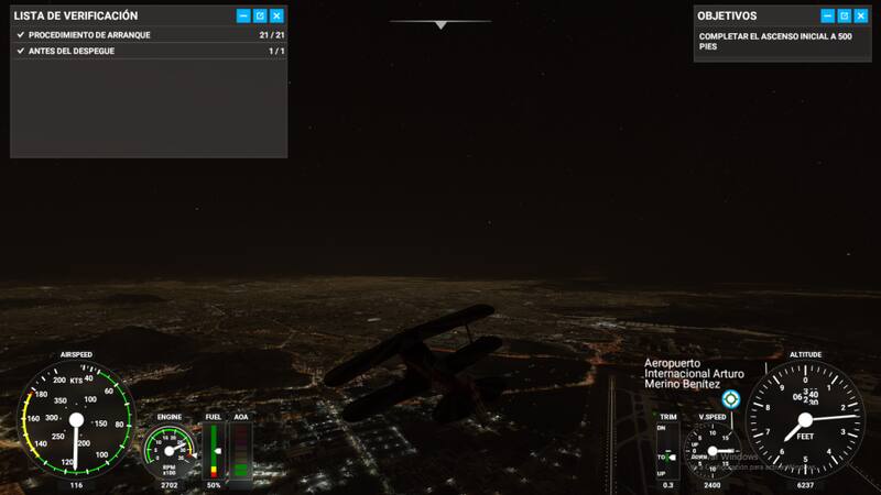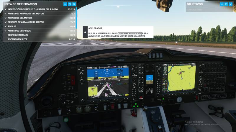 El juego me puso en una cabina, cientos de botones, el motor apagado, y yo sin saber que apretar. Tras explorar un rato, es que logré prender motores, y acelerar por la pista, salirme de esta, elevarme unos metros para luego caer. Un desastre.