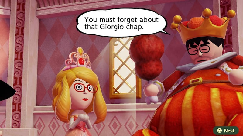 Y estos Miis son los que finalmente le dan vida a una aventura que es totalmente genérica y conocida, pero al poder modificarla a tu propio gusto, se convierte en un relato propio y único. Un ejemplo: Una de las primeras aventuras del juego consiste en un triángulo amoroso entre una princesa y dos príncipes de otros reinos. El favorito del rey es obviamente el más antipático, y a quien quiere la princesa es cobarde pero de buen corazón. Una historia que se ha contado una y mil veces, pero que acá pude personalizar colocando al Príncipe Boric y el Príncipe Jackson disputando el amor de la princesa Vallejo.
