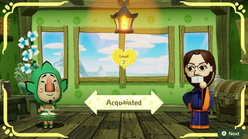 Aun así, en la posada es donde ocurre la mayor cantidad de decisiones que puedes tomar en el juego: puedes alimentar a tus personajes para aumentarles sus habilidades, comprarles ítems para fortalecerlos, modificar su estética -e incluso reemplazarlos- y lo más importante: crear relaciones entre estos personajes. Porque en Miitopia, casi tan importante como subir de nivel a tus guerreros y equiparlos con buenas armas es hacer crecer sus relaciones personales.