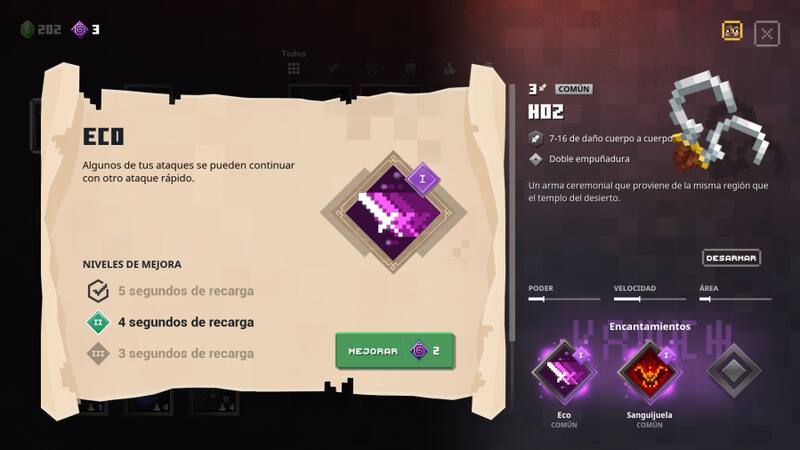 Aunque las armas no son tan variadas, lo que nos permite personalizar a nuestro personaje es que cada una e estas puede tener habilidades especiales, las cuales desbloqueamos al subir a nuestro personaje de nivel, es así como aunque tengamos dos espadas iguales, puede que las habilidades sean diferentes y podamos escoger por la que más nos acomode.