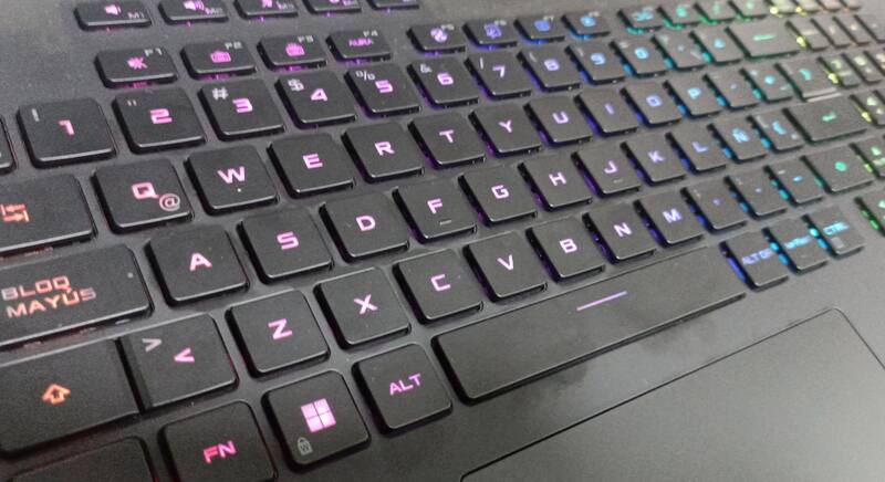 En cuanto a su chasis nos encontramos con unas cubiertas principalmente de plástico, algo que llama la atención ya que en muchas ocasiones los equipos de alta gama y con un elevado precio como es este caso, cuentan con terminaciones metálicas. En este caso tenemos cubiertas plásticas, así como un panel semi-transparente en la parte del teclado, el cual permite ver hacia el interior de esta máquina. En la parte inferior y posterior este notebook cuenta con luces RGB, las cuales aunque no molestan, en mi opinión no lucen del todo bien en la máquina.