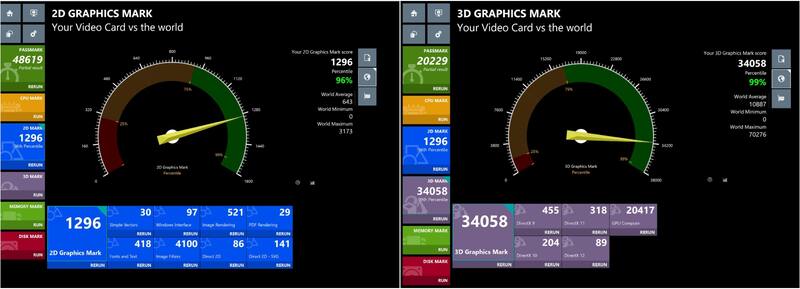 En cuanto a la potencia de estas tarjetas hay que mencionar que no se queda atrás y de acuerdo los benchmark realizados con PerformanceTest, en lo que respecta a gráficos 2D, se ubica en el 96% más alto en lo que respecta a rendimiento, mientras que en lo que respecta a 3D se ubica en el 99% de acuerdo a los test realizados con el mismo programa.