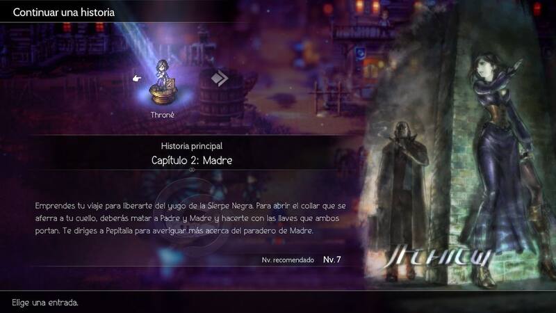 Los ocho protagonistas con los que nos encontramos en esta ocasión son Osvald, Castti, Temenos, Ochette, Partitio, Agnea, Throné, y Hikari, cada uno con sus propias motivaciones e historia en el continente de Solistia, el cual está conformado por dos grandes islas. Hay que apuntar que al igual que la primera entrega, y quizás el único punto en el que es débil este juego, es que al momento de avanzar en algún capítulo de un personaje, se olvida por completo que este cuenta con compañeros que lo acompañan tanto para los diálogos como para las escenas, lo que se vuelve un poco anticlimático. Fuera de esto, cada una de estas historias tiene su propio atractivo, resultan atrapantes desde el primer minuto y dan la libertad para que el jugador avance en las que más le resulten atractivas.