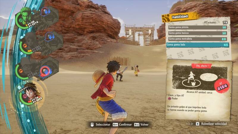 Esto le da un toque de estrategia ya que personajes más de soporte como Nami o Ussop sacan mucho más provecho estando en zonas separadas de los enemigos, mientras que atacantes como Zoro o Luffy funcionan mucho mejor peleando en la misma zona que los enemigos. Este aspecto del combate se ve complementado con el hecho de que puedes utilizar a todos los personajes de la tripulación, y es que aunque tengas cuatro activos, con sólo un botón podrás cambiarlos por los que se encuentran en la banca, algo que sirve para salvar alguno que tenga poca vida o cambiar la estrategia de combate.
