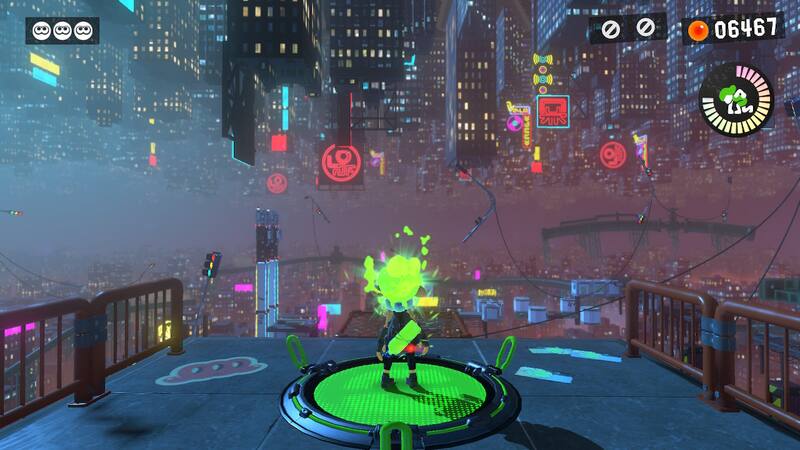 Para los que no jugaron la expansión de Splatoon 2, el sistema funciona así: En cada uno de los 6 mundos del juego hay niveles con desafíos específicos: la mayoría son del tipo “llega hasta el final de la etapa” pero otros son más creativos como contar con tinta limitada, romper dianas en el cielo o encontrar llaves para ir abriendo el camino. Cada etapa tiene un costo y a veces tres opciones de armas distintas que varían en la dificultad que tiene cada una de superar el desafío. Al pasar el nivel ganarás huevos que luego te servirán para abrirte caminos -similar a las estrellas en los Marios 3D- y así elegir si quieres pasar más etapas, o bien, llegar más rápido al final.