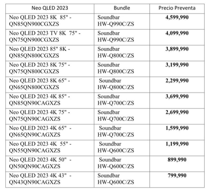 Dentro de la línea 8K, también se encuentra el modelo QN800C en tres tamaños diferentes: 65″, 75″ y 85″. Para completar la familia, está el Neo QLED 4K, QN90C, disponible en una amplia gama de tamaños que van desde 43″ hasta 85″. Ese último modelo cuenta con 20 redes neuronales que mejoran la calidad de imagen. Los tamaños de 43″ y 50″ en esta versión 4K se destacan por su frecuencia de actualización de 144Hz, lo que ofrece una experiencia mejorada para los fanáticos de los videojuegos.