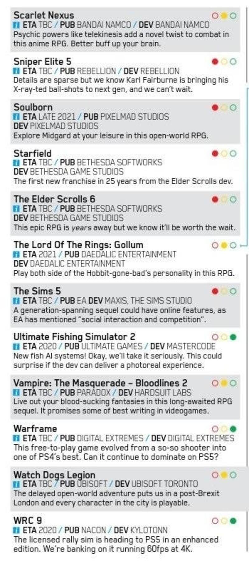 El listado no posee grandes sorpresas y tiene bastantes juegos de la generación actual y otros ya anunciados. Acá te dejamos el listado, y más abajo las imágenes de la revista.