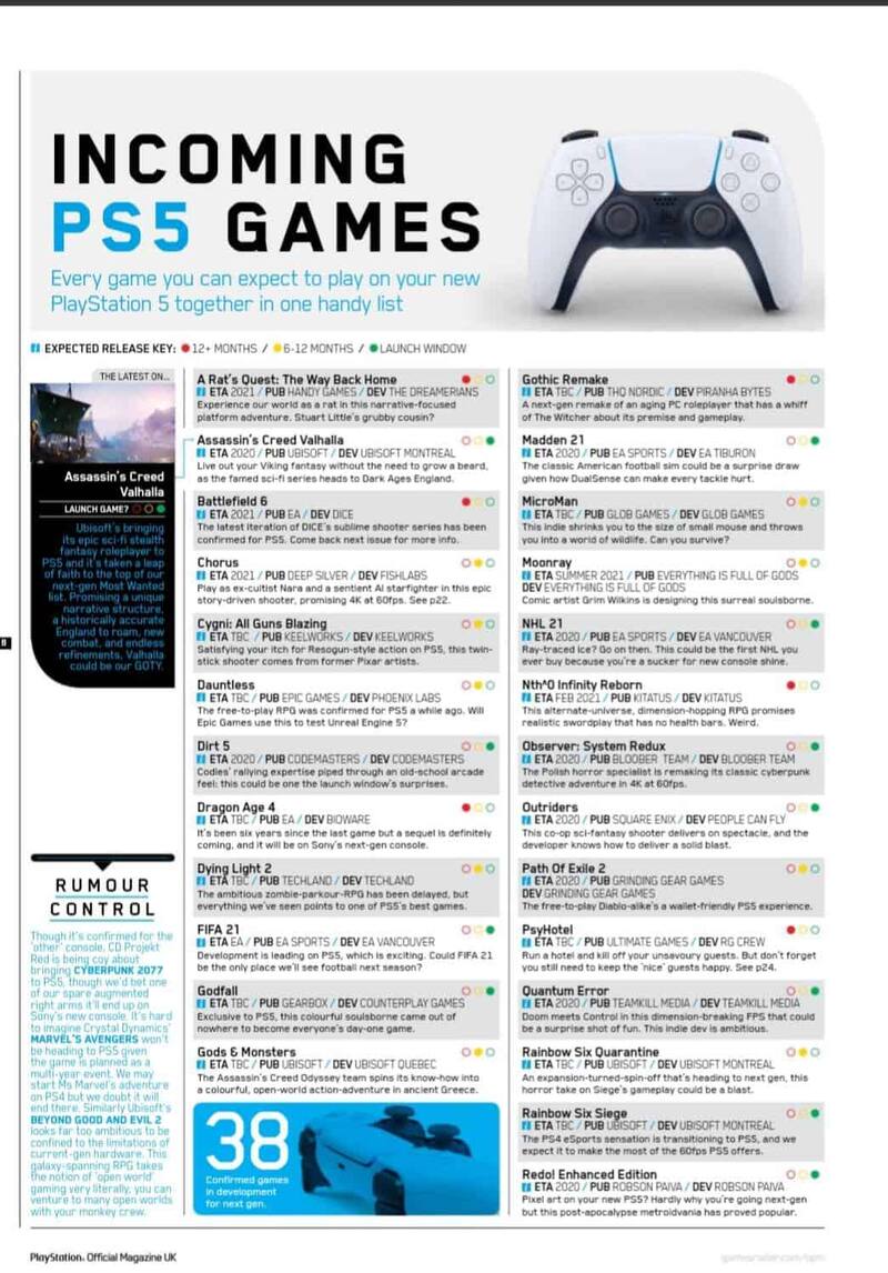38 juegos que llegarán a la PlayStation 5 se dieron a conocer a raíz de una filtración de la revista de PlayStation de Reino Unido.