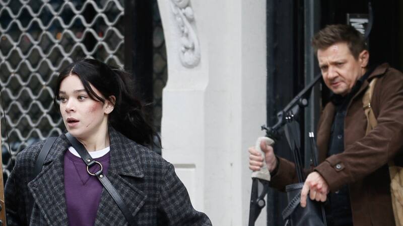Si bien aún no hay detalles sobre la trama de la serie, esta foto del set muestra que el arquero interpretado por Jeremy Renner lleva un carcaj con el logo de la organización mientras camina junto a Kate Bishop y el perrito que los acompañará en sus aventuras.